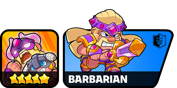 This Elite Barbarian is displayed as an ally in your squad, similar to Chicken Hatchlings or Mortis's troops. These Elite Barbarians have full HP and stats, but cannot be merged into a Fusion with others.